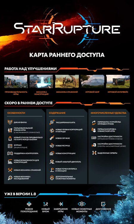StarRupture — игра от первого лица, где вам предстоит исследовать открытый мир и строить базы. Играйте в одиночку или с друзьями, добывайте ресурсы на изменчивой планете, создайте замысловатую промышленную систему и дайте отпор ордам инопланетных чудовищ.