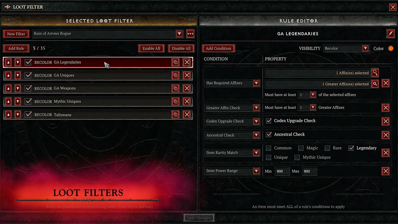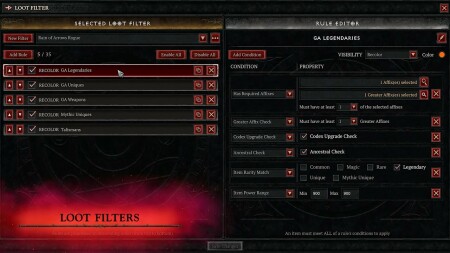 ∙ Фильтры лута
