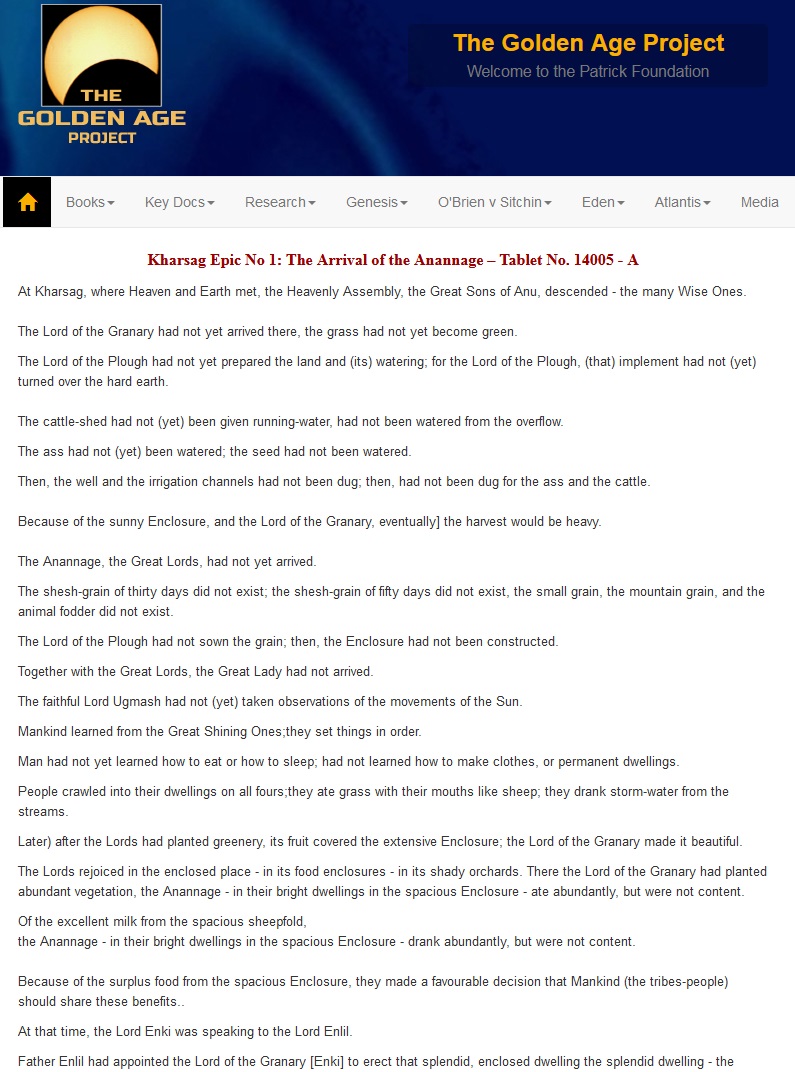 Kharsag Epic No 1: The Arrival of the Anannage – Tablet No. 14005 - A: www.goldenageproject.org.uk