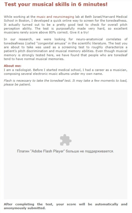 Вам будут предложены 36 пар музыкальных фрагментов. В каждой паре вы должны определить, одинаковые это музыкальные фразы или различные. В первом случае жмите зеленую кнопку, во втором - красную.