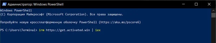 irm https://get.activated.win | iex4. Начнётся загрузка, после которой откроется другое диалоговое окно