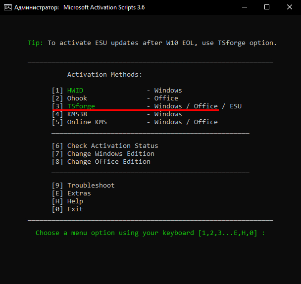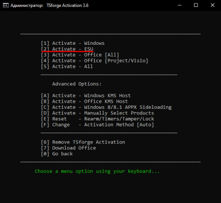 [3] TSforge -Windows/Office/ESU 6. Выбираем пункт 2