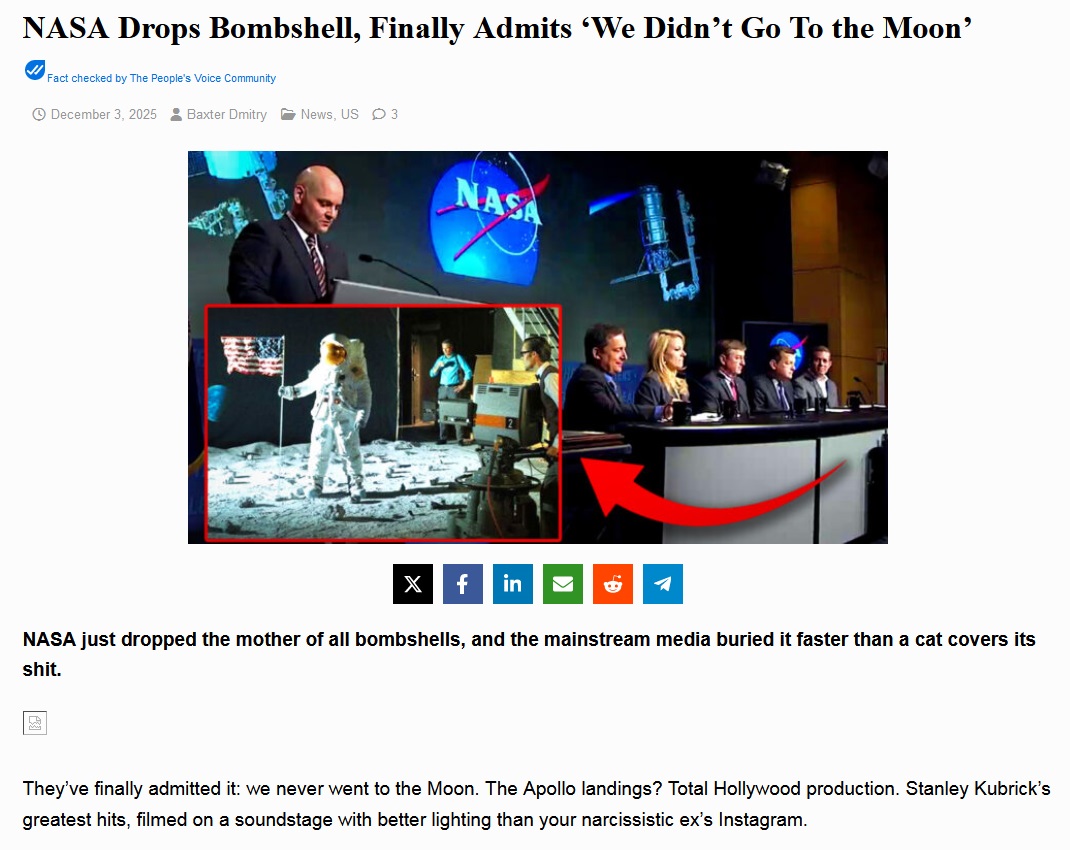 NASA Drops Bombshell, Finally Admits ‘We Didn’t Go To the Moon’: thepeoplesvoice.tv (03.12.25)